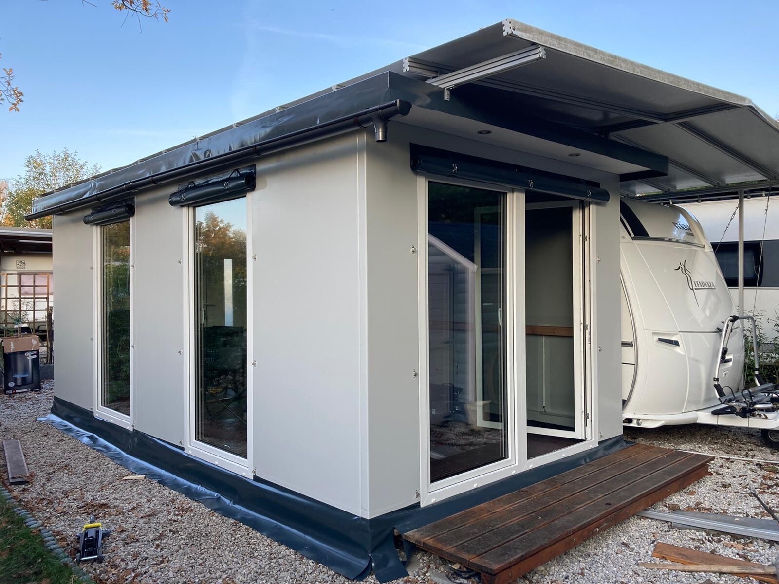 Wintervorzelt / Dauerstandzelt mit Rückwand