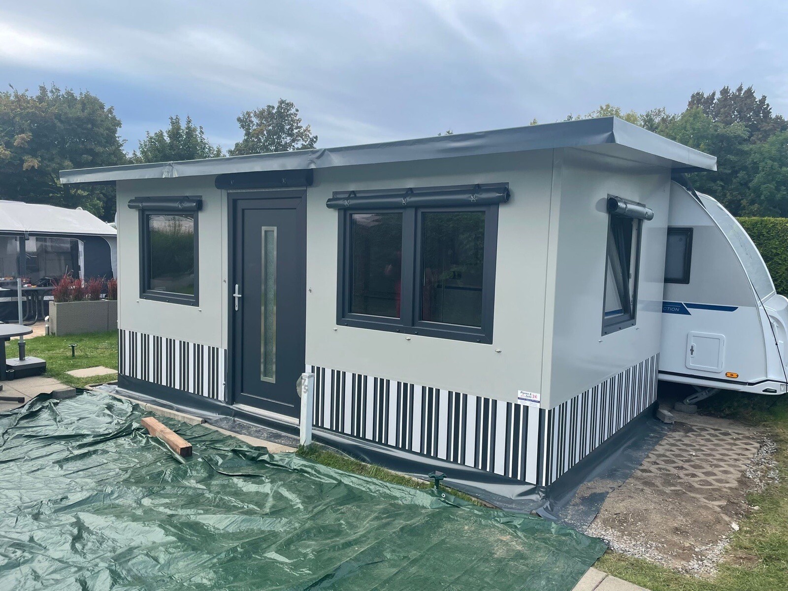Dieses hochwertige Dauerstandzelt der Marke Planen Zelte eignet sich perfekt für Campingplätze, Dauercamper und Outdoor-Enthusiasten.